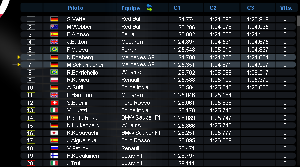 Já o hepta campeão Schumacher (7ª) continua levando tempo do jovem Rosberg (6ª), que entrega o pescoço em cada curva. O circuito de Melbourne continua bonito e competitivo. O problema são os bumps (ondulações), principalmente nas freadas, problema que fica mais grave na largada, quando os carros recebem até 150 kgs de peso adicional com os tanques cheios. Para os aficcionados, como o Editor, sobra mais uma madrugada insone: o Grande Prêmio vai terminar lá pelas 5 horas da manhã, o que proporcionará, com certeza, um domingo de ressaca.