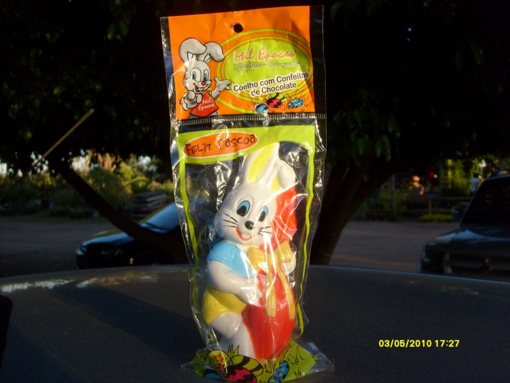 Este coelhinho de plástico recheado de confeitos de amendoim foi distribuído durante o sábado pela manhã, para crianças, durante a realização do Arrancadão, por pessoas até agora desconhecidas que estavam dirigindo um carro preto, também não identificado. Acontece que é produto há muito tempo vencido, com data de validade em 4 de janeiro de 2009, tendo causado complicações gástricas no mínimo em duas crianças. A mãe de um dos meninos que teve fortes diarréias e desidratação ocasionada pela ingestão do alimento disse que sabe quem é o responsável pela distribuição, mas não quis identificá-lo, nem registrar ocorrência policial.