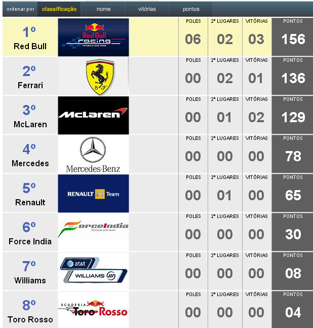 Veja a seguir as tabelas de ordem de chegada em Mônaco, classificação dos pilotos e classificação das equipes. Infográficos do portal UOL.