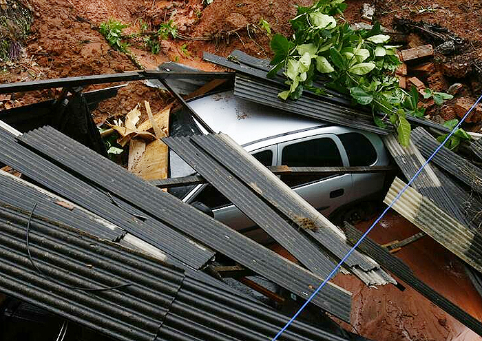 Soterramento de 3 carros, em deslizamento de barranco, felizmente sem vítimas. Foto de Marco Aurélio Martins, da Agência A Tarde.