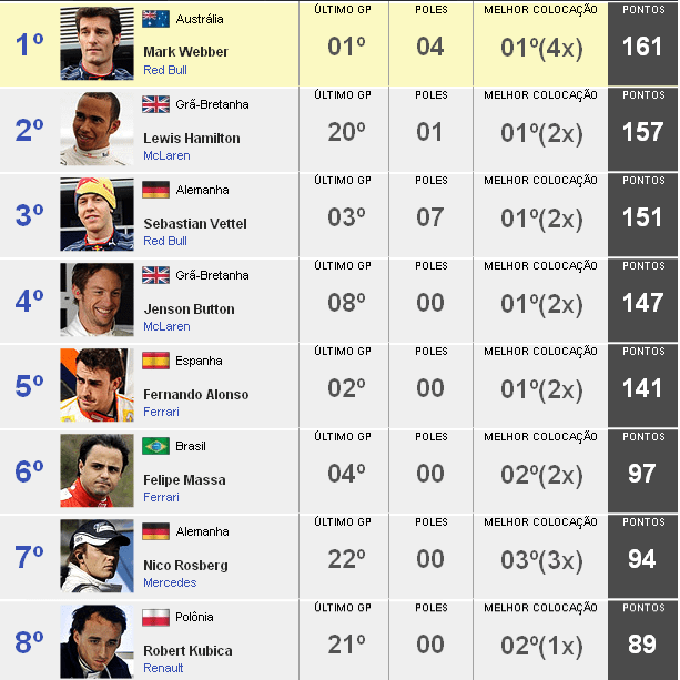 A classificação após o GP da Hungria: