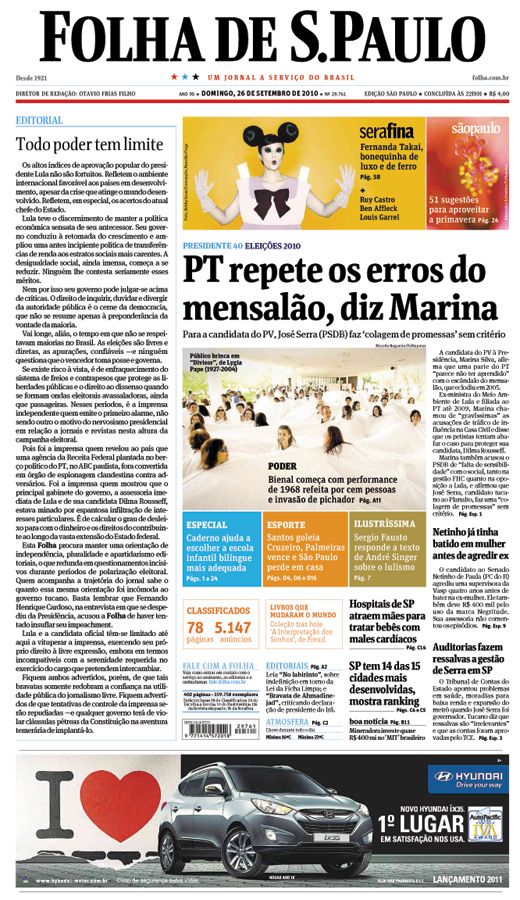 A Folha de São Paulo publica hoje um editorial na primeira página. É outro forte libelo contra a tentativa de cerceamento e minimização da importância da imprensa no País. Lula já voltou atrás. Não pode e não deve enfrentar toda a imprensa do País, pois ela multiplica-se em milhares de blogs, sítios e portais da internet. Acabou-se o tempo em que os esbirros das ditaduras prendiam caminhões de papel, empastelavam as tipografias dos jornais, explodiam bombas em bancas que vendiam os jornais da imprensa nanica. Hoje o mundo está online e mesmo na cruel ditadura de países fechados como Cuba e Venezuela uma voz mais alta se levanta na imprensa eletrônica. O tempo das idéias primitivas está se acabando, inclusive para Lula e seus comandados.