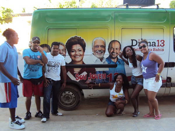 “Sete vans personalizadas estão percorrendo municípios baianos para divulgar as propostas da nossa candidata Dima Rousseff (PT). A bordo, jovens militantes com muita alegria e vontade de ver o Brasil seguir mudando.
