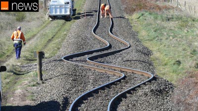Um terremoto de 7,1 graus na Nova Zelândia transformou uma linha férrea do país em um sinuoso “espaguete”. Fotógrafos e geofísicos citados pelo site “Orange News” garantem que a imagem não foi manipulada digitalmente. A linha, que liga Canterbury à costa oeste da Ilha Sul, foi reparada e perdeu dois metros da extensão original.
