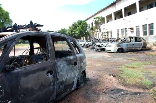“Acionamos o Corpo de Bombeiros e fomos conferir in loco o que estava acontecendo. Ao chegarmos lá percebemos que várias viaturas estavam em chamas. Menos mal que algumas dessas viaturas eram sucatas e já haviam sido dado baixa. Dos seis carros queimados, quatro Merivas não tinham mais condições de recuperação e duas Paratis aguardavam recursos para serem recuperadas”, disse Cel. Menezes, desabafando que a atitude macula a imagem da corporação.