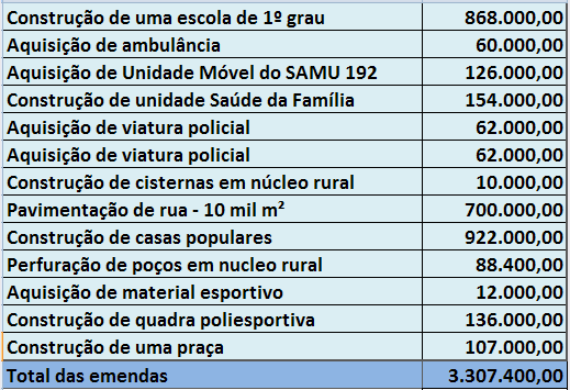 As emendas sao muito bem vindas assim como suas destinações. Outra pergunta que nao quer calar: a que horas podemos passar no banco para sacar o dindin?