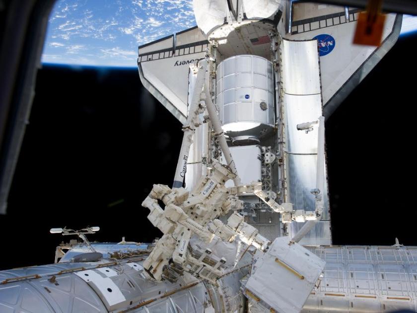 A Discovery acoplada à Estação Internacional na sua última viagem.