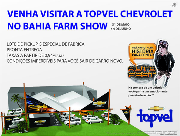 Hoje, sábado, último dias das promoções especiais da TOPVEL na Bahia Farm Show.