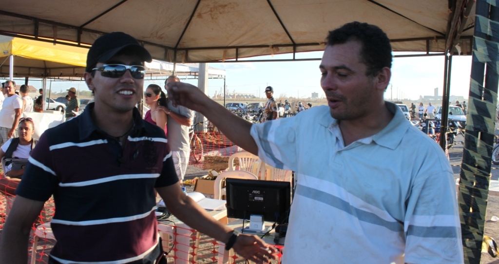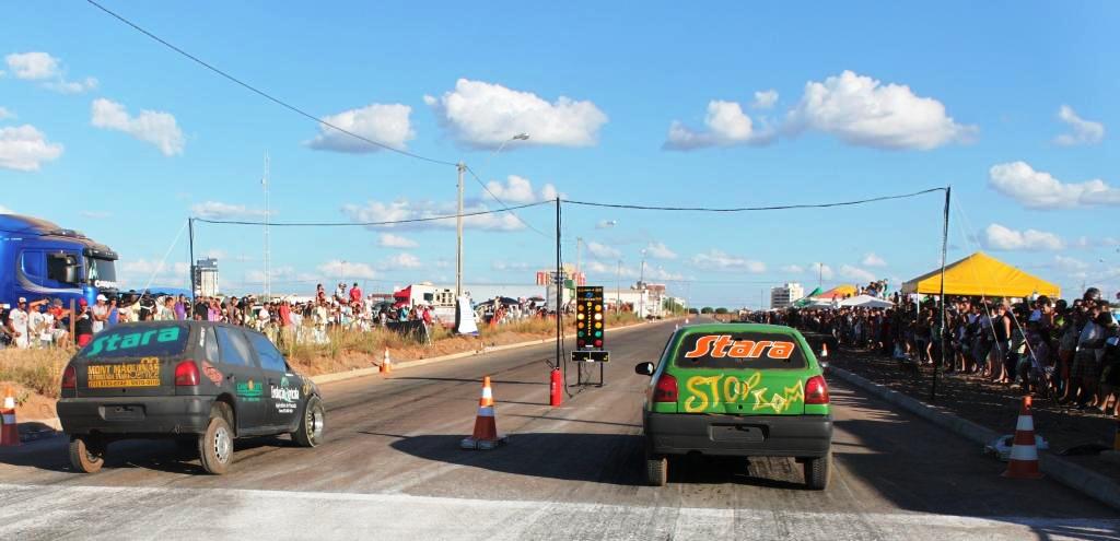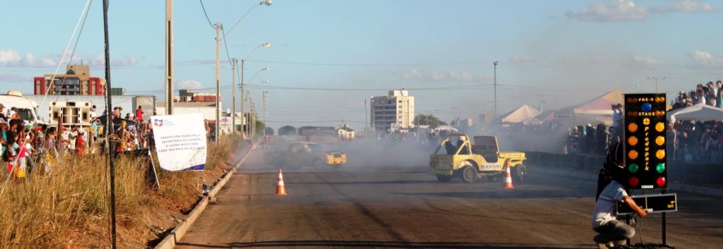 A Associação de Automobilismo do Oeste Baiano realizou, neste final de semana, mais uma competição de arrancadas na avenida Kichiro Murata. A organização do evento providenciou o isolamento do público, uma proteção de pneus, a vigilância de seguranças para que os assistentes não invadissem a pista e até cronometragem eletrônica, a partir de um starter que o pessoal chama de “pinheirinho”. É muito difícil calcular, mas entre 1.500 e 2.000 pessoas estavam na assistência hoje.
