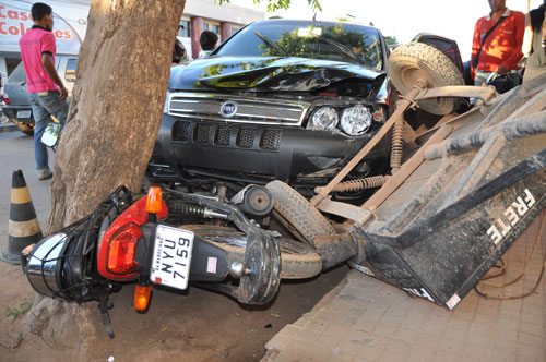 “Quando escutei o barulho sai correndo para fora e vi minha moto embaixo do carro. Foi muita sorte não estar no local quando o carro invadiu a contramão e imprensou minha moto contra uma árvore”, disse o mototaxista Jairo Carlos carvalho Gomes, que no momento do acidente encontrava-se numa loja em frente ao ponto de mototáxi.