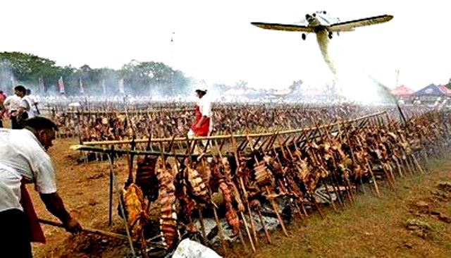 Gaúcho quando faz um churrasco é assim! Tem que salgar de avião. A foto foi enviada pelo nosso cardiologista Cleber Winkler, o que nos autoriza, por vias transversas, a comer uma costela gorda neste final de semana.Não estive presente ao evento, considerado o maior do mundo, e realizado anualmente em Alegrete, na fronteira gaúcha. Mas aposto que mais de 90% da gauchada que foi era maragata e colorada. Ao resto, chimangos e gremistas, não foi permitido acesso ao local.