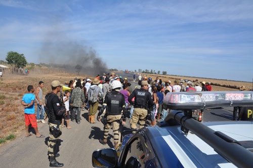 A BR 242 ficou bloqueada por aproximadamente duas horas, hoje pela manhã, ocasionando um congestionamento de aproximadamente quatro quilômetros, quando integrantes do movimento sem terra interromperam o trânsito com pedras e fogo de pneus. O caos poderia ter sido maior, mas motoristas de veículos de passeio usaram rotas alternativas em meio ao cerrado.Foto e informações de Eduardo Lena, do Jornal Nova Fronteira. Leia mais clicando no link.