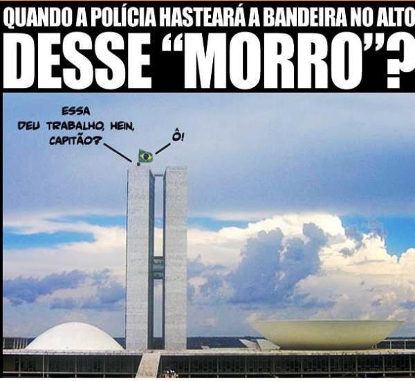 1. Naquele morro prevalecia a lei do crime.Nesse “morro” prevalece “A LEI DE GERSON”.Hastear a flâmula é fácil,dificil será fazer-se aceitar as regras da boa índole.