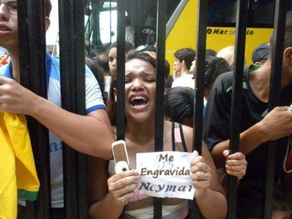 1. A Maria está presa,cometeu um crime de menor potencial ofensivo,o capa preta sentenciou:ela deverá se engravidar do craque!!!esse é o motivo de tanto desespero.O rapaz que está ao lado,com a camisa do brasil,só sairá quando o Brasil for hexa.E o de preto está acanhado ele,tem um caso com o de branco que está em segundo plano,com a mãozinha na boca.HUMOR.