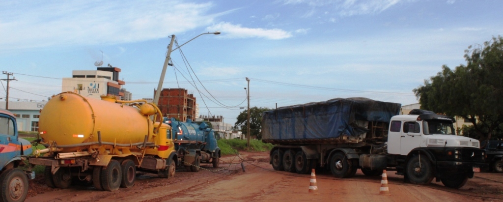 Ontem à tarde, um caminhão da Accert Logística enroscou-se com os fios de energia em frente à Delegacia de Polícia, na avenida Salvador. À tardinha, outro caminhão, uma carreta-caçamba, enrolou-se também com os fios, inclinando perigosamente os postes e derrubando o poste-padrão da Delegacia. Enquanto isso, funcionários e presidiários (são quase 80) permanecem sem energia.