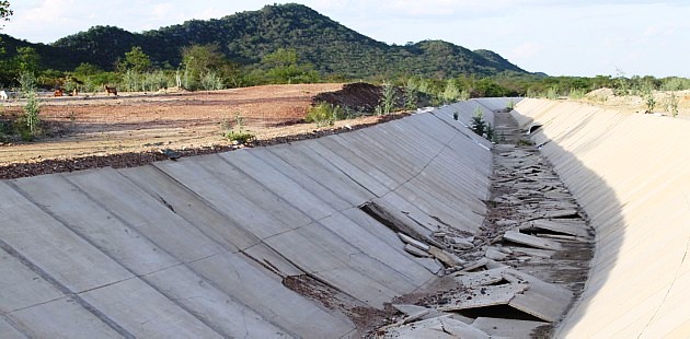 Os canais que deveriam estar conduzindo a água do rio São Francisco para o sertão permanecem secos. Como seca continua a caatinga inclemente. Ali evapora apenas o dinheiro do contribuinte. Foto de Wilson Pedrosa, da Agência Estado, para o Estadão.
