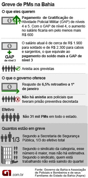 Veja no infográfico do portal G1, as diferenças que estão prolongando a greve dos PMs: