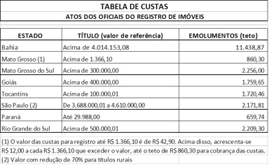 Os produtores baianos também estudam um precedente protagonizado pelo estado de São Paulo, como uma possível alternativa para atenuar o problema na Bahia. Com base no Decreto Federal n° 167/67, que instituiu os títulos de crédito rural, instrumentos utilizados para o financiamento da atividade agrícola de interesse social (produção de alimentos), e estabeleceu um teto máximo para os custos dos emolumentos, limitando a um quarto do valor do salário mínimo da região, a Secretaria de Justiça e de Cidadania, a Associação de Notários e Registradores do Estado de São Paulo – ANOREG-SP, e o Sindicato de Notários e Registradores do Estado de São Paulo firmaram um Termo de Acordo de Redução de Emolumentos. Este termo homologou a redução de 70% dos valores fixados nas Tabelas de Emolumentos dos Ofícios de Registro de Imóveis aprovados pela Lei n° 11.331/2002, para atos envolvendo títulos de crédito rural, limitando o custo ao teto de R$2.171,81.