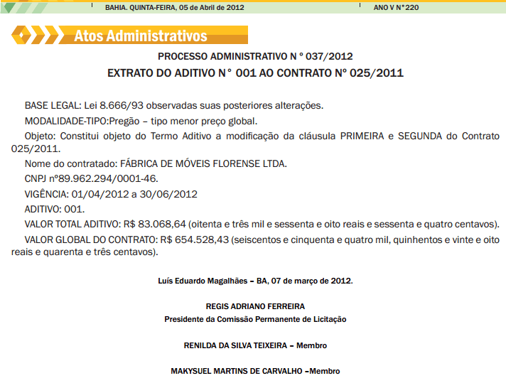 Em mobiliário certamente não será, pois ontem a Câmara fez um aditivo ao contrato de aquisição de móveis no valor de R$83 mil. O valor do contrato, conforme mostra o print da página da Câmara, é de R$654 mil.