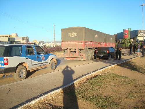 Uma carreta e um veículo Fiat Pálio tiveram uma certa convergência de ideias e resolveram utilizar a mesma trajetória, hoje cedo, na rotatória em frente à Câmara Municipal, em Barreiras. É claro que o pequeno automóvel acabou perdendo a parada. Enquanto o Anel Viário de Barreiras não fica pronto, esse tipo de comunhão de pensamento entre pequenos e grandes vai continuar acontecendo. Informação e fotos de Jadiel, do Barreiras Notícias.