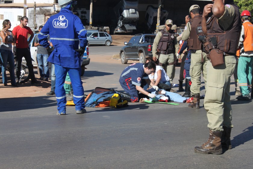 O policial militar Adriano Palmeira da Silva, 28 anos, ficou gravemente ferido, hoje, em torno de 9h, quando colidiu sua pequena moto com uma camionete S10, pilotada por Luiz Carlos Abraão, de 53 anos, no acesso à BR-242, fronteiro à Topvel. O Policial recebeu o primeiro atendimento da SAMU e foi conduzido para o Hospital do Oeste para sofrer cirurgia, pois sofreu fratura exposta em uma das pernas.