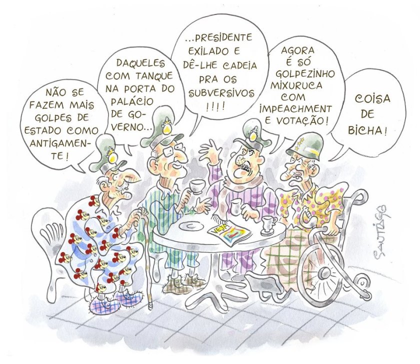 Santiago Neltair Abreu é um gaúcho do mundo. O cartoon foi publicado no jornal do Sindicato dos Professores do Rio Grande do Sul.