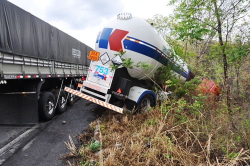 De acordo com informações de Élcio Antonio da Costa, motorista da carreta de placa CUA-0109, Várzea Paulista/SP, que transporta produtos químicos, ele seguia de Catalão/GO sentido Laranjeiras/SE, onde carregaria o caminhão com amônia, quando numa das curvas da Serra do Saco percebeu que vinha em sua direção uma carreta totalmente desgovernada, em alta velocidade, em formato de ‘L’. “Brequei o caminhão e desviei para o acostamento, mas não consegui evitar a batida”, comentou Élcio, relatando que o motorista da outra carreta vinha correndo muito e estava sem o cinto de segurança. “No momento em que o outro caminhão colidiu contra o meu, o motorista foi lançado para fora, passando por cima da cabine do meu caminhão”, desabafou Élcio da Costa.