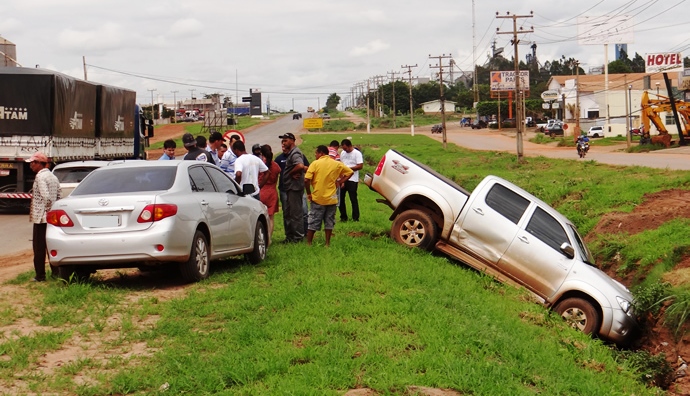 O repórter onipresente, Sigi Vilares, foi o primeiro a chegar: um acidente envolveu uma Hilux e um Corolla, na rotatória das palmeiras, na BR 242, sentido setor industrial de LEM, por volta de 09h40. Na colisão, a caminhonete perdeu o controle e caiu dentro de um canal entre a rodovia e a avenida Barreiras, no Jardim Primavera. Os motoristas dos veículos nada sofreram.