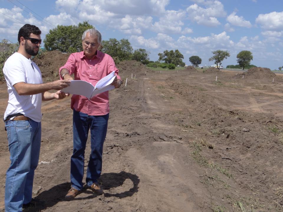 O prefeito Humberto Santa Cruz inspeciona as obras iniciais da duplicação da BR 242 no trecho urbano, em Luís Eduardo. As obras começam na altura da casa de espetáculos Quatro Estações e irão até a altura da Bunge Alimentos.