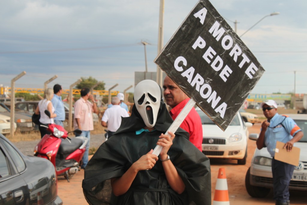 Até a morte estava presente, fazendo propaganda do uso do cinto. Aliás, quando tira a máscara, a morte é bem mais bonitinha do que pretende ser. Foi o que constatou este repórter no local.