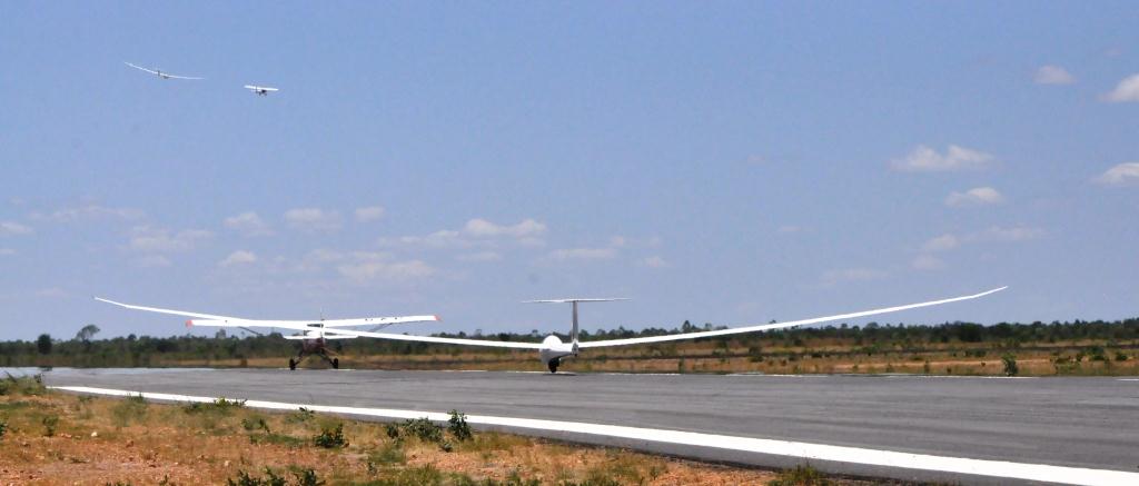 Mais de 30 pilotos completam hoje a última prova do Campeonato Brasileiro de Planadores, composta de duas etapas, a primeira delas a do Centro Oeste, também realizada em vôos sem motor sobre as planícies e escarpas do Oeste baiano. As correntes térmicas favorecidas pelas terras aradas, pelo calor e a segurança de poder pousar fora da pista do aeródromo municipal, além de um grande número de pistas alternativas em fazendas fizeram com que a região fosse eleita pelos pilotos como a que melhor proporciona.