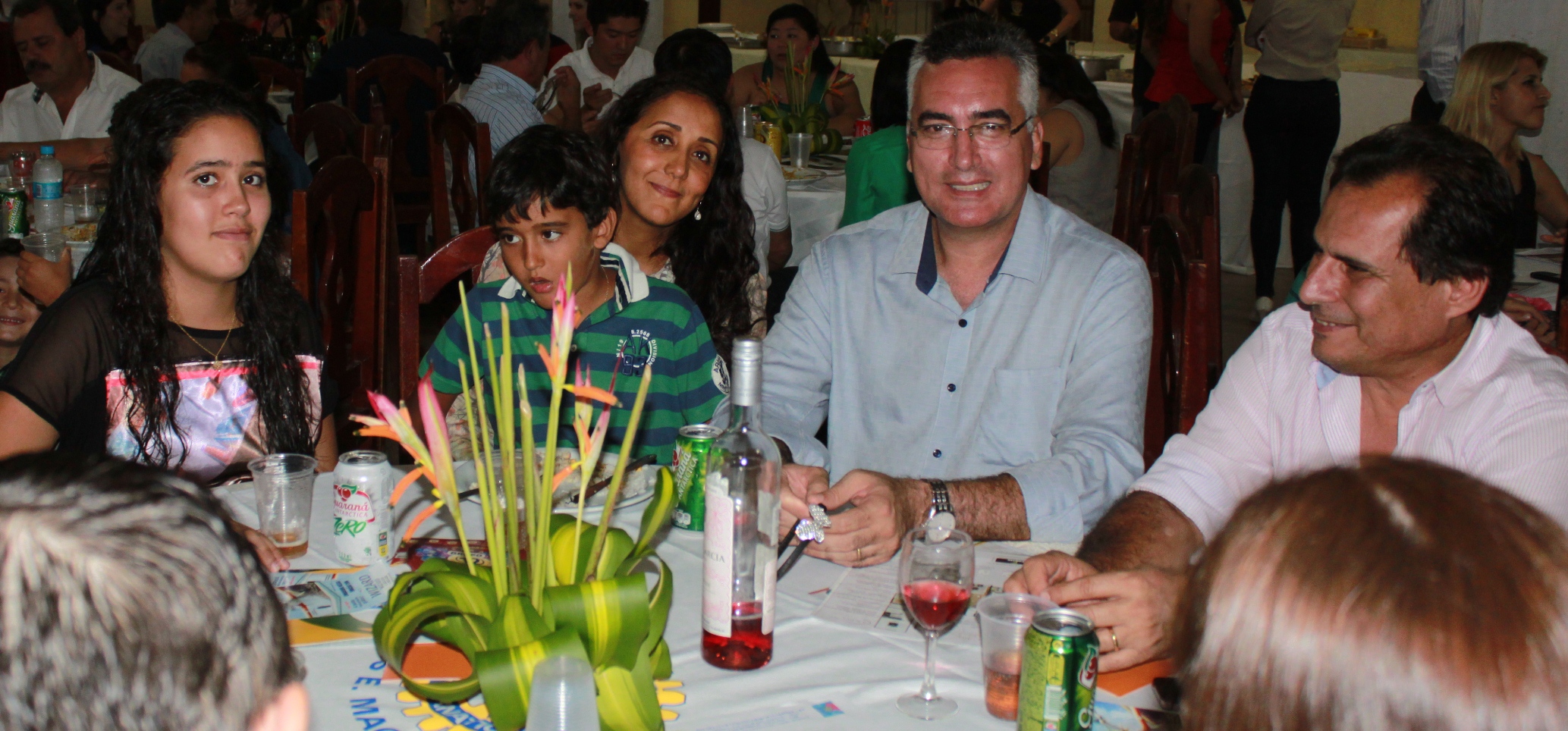 Um grupo de abnegados organizadores, incansáveis ao servir os convidadosO Presidente do Rotary Luís Eduardo e o empresário Jair FranciscoOdacil Ranzzi, liderando uma das mesas da festaO vereador Jarbas Rocha e o empresário Rogério Mori.