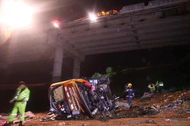 Ônibus com turistas gaúchos cai em viaduto, mata seis e deixa 32 feridos na divisa entre SC e PR
