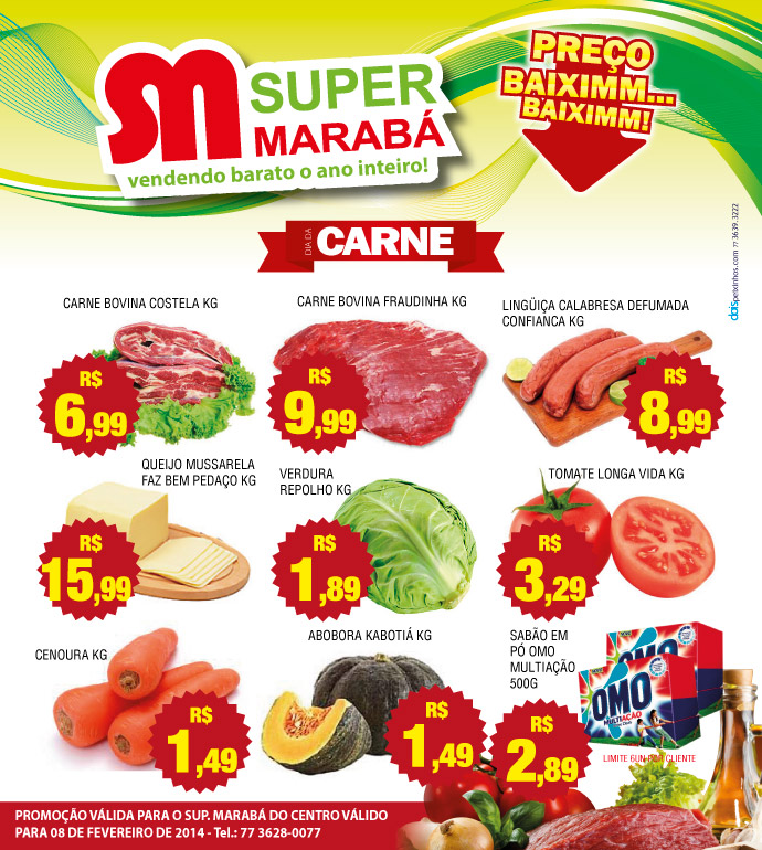 Promoção de preços da carne, hoje, no Super Marabá