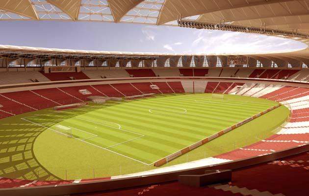 - 4 – Quanto à sua capacidade, o estádio contará com 48 mil lugares para a Copa. Após o torneio, 51 mil. A arquibancada inferior terá 23 mil espaços.