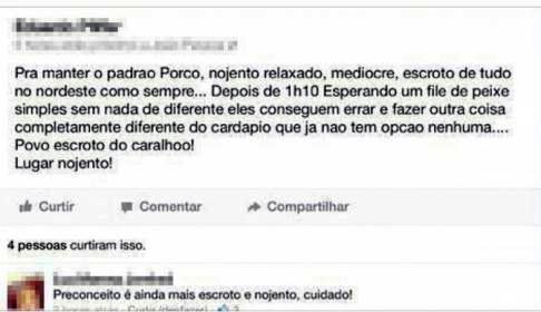 Apesar do grave incidente aeronáutico acontecido no fim da tarde, em que um Fokker 100 da Avianca não conseguiu travar a bequilha na hora do pouso, o que dominou os sites de notícias e redes sociais durante o dia foi o comentário, postado no Facebook, por um piloto da companhia, em que classifica como “nojento e relaxado” o povo do Nordeste. O piloto foi demitido no final da tarde e a companhia repudiou suas afirmações.