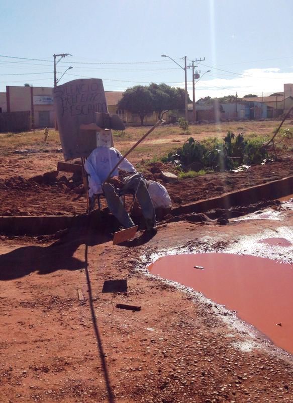Manhã de sol, segunda-feira de feriadão, quem não gostaria de iscar uns lambaris para uma fritada no almoço? O pescador foi flagrado por um leitor na esquina da principal rua da cidade, a avenida JK, no cruzamento com a Piauí. Um cartaz maldoso, próximo, traz a seguinte inscrição: “Silêncio, prefeito pescando”. Gostei mesmo foi do chapelão do pescador.
