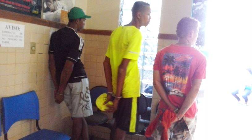 No início da tarde desta segunda-feira, dois rapazes invadiram uma fábrica de pastéis na rua Caravelas, no bairro Santa Cruz, armados com uma pistola .380 e um revólver 32. A PM conseguiu encontra-los logo depois do assalto, a bordo de uma Honda Bis e os conduziu à Delegacia de Polícia. Também foi preso Marivaldo dos Santos Souza, de 25 anos, que ajudou na fuga dos assaltantes com um carro Santana de cor azul. Fotos de Nelson Teixeira para o InformeLem.