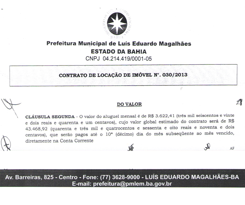 A Administração Municipal esclarece que o contrato de aluguel sob número 030/2013, destinado ao funcionamento da Escola Municipal Jardim Paraíso é de R$ 3.622,41 mensais, com valor anual é de R$ 43.468,92, conforme publicação na página da Imprensa Oficial Eletrônica na data de 23 de abril de 2013, edição 821.