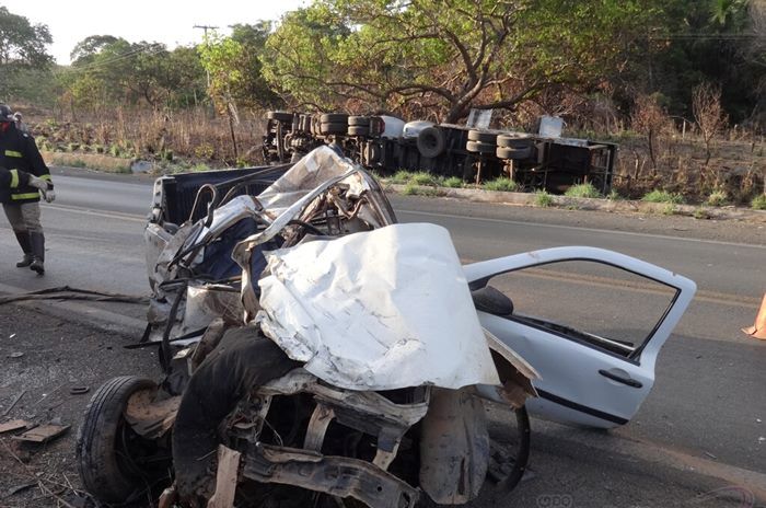 Uma colisão frontal entre um Fiat Strada e um bitrem ocorrida por volta das 16h de ontem, 10, no Km 813 da BR 020/242, próximo à curva do Zé Marizia, deixou duas pessoas mortas. Os ocupantes do Fiat/Strada de placa JQT–8929, Ualas de Souza Almeida, 31 anos, e Edvaldo Paulo de Matos, 40 anos, morreram na hora. A carreta saiu da pista e tombou às margens da rodovia, mas o motorista Antônio Marcos Farias nada sofreu.
