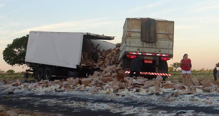 Um caminhão baú carregado de queijo, com placa de Anápolis/GO, trafegava sentido Luís Eduardo Magalhães, quando invadiu a pista contrária colidindo contra uma carreta vazia com placa de Itaberaba/BA.