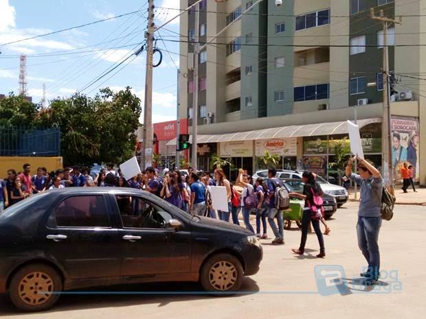 Alunos do Colégio Estadual Mimoso do Oeste, no centro de Luís Eduardo Magalhães, estão iniciando agora, 11h30m, uma grande manifestação pela rápida instalação da Universidade Federal do Oeste da Bahia. O manifesto deve ter grande visibilidade em função do volume de tráfego, neste momento, na esquina das ruas Clériston Andrade e Paraná. A Guarda Municipal de Trânsito está no local para organizar o protesto.