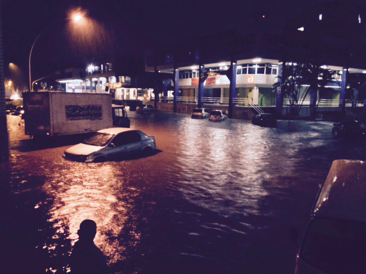 Cruzamentos sob os eixos, como as tesourinhas da 208 Sul e 211 Norte foram inundadas com lâminas de mais de um metro. Até em partes do Congresso Nacional, como a chapelaria, as goteiras causaram danos. Nos eixões norte e sul o tráfego estava parado. Na Via EPIA – Estrada Parque Indústria e Abastecimento o tráfego também parou. Calcula-se que a precipitação tenha atingido mais de 120 mm, em meio a uma tempestade de raios e ventos fortes. Veja fotos do Correio Braziliense e das redes sociais.