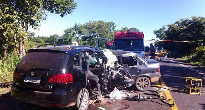 Uma colisão frontal entre dois automóveis deixou três pessoas mortas e outras três feridas na manhã deste sábado (27) na BR-020, em Alvorada do Norte, em Goiás, informou o portal Terra, depois de alertado por seu leitor Bruno Lopes, autor das fotos. O acidente aconteceu às 7h20 no km 150 da rodovia.
