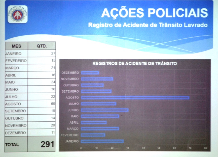 Entre os números divulgados, destacam-se 33.878 abordagens policiais realizadas durante o ano de 2014, a essência do trabalho repressivo segundo o capitão Paulo; 1.361 ocorrências policiais lavradas; e o fato de que 40% dos crimes cometidos na cidade são atribuídos a menores (17%) e jovens entre 18 e 24 anos (23%) e o números de acidentes de trânsito em 2014, 291 no total, com destaque para agosto, quando foram registrados 69 ocorrências, mais do que duas por dia.