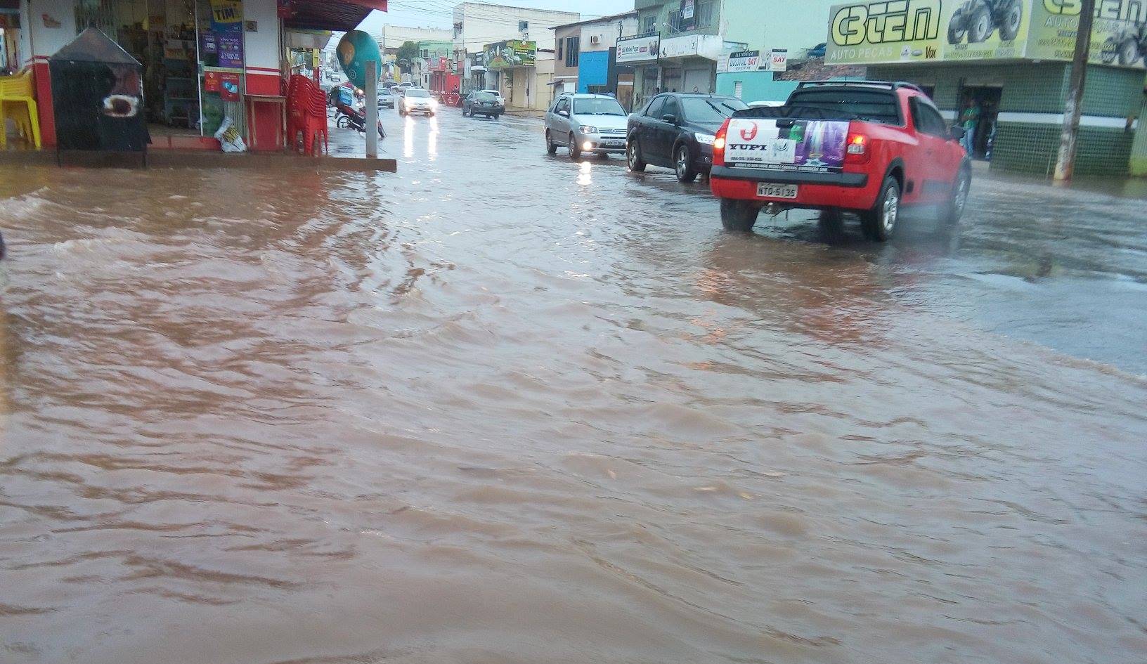 Em Barreiras a chuva alagou várias ruas. Fotos de Elba Lopes, no Facebook.