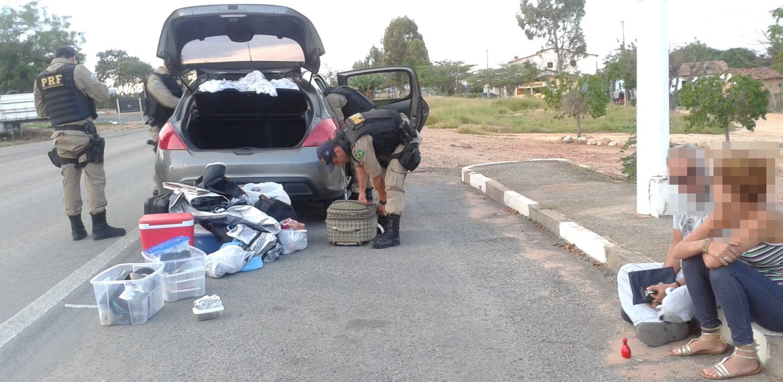 Policiais Rodoviários Federais em Operação de Combate a Criminalidade detiveram um casal por tráfico de drogas no final da tarde desta segunda-feira (09). O flagrante aconteceu por volta de 17:00h, no KM 383 da BR 242, trecho do município de Seabra, quando foi abordado um Peugeot/306 Allure com placas pernambucanas. Ao fiscalizar o interior do veículo, os PRFs verificaram que em meio a algumas bagagens, estavam sendo transportados aproximadamente 600g de substância análoga à maconha. Questionados pelo policias, os ocupantes informaram que adquiriram a droga na cidade de Recife/PE e que a mesma seria consumida, durante o carnaval, no povoado de São Jorge, na cidade de Alto Paraíso/GO. O condutor de 55 anos, e a passageira de 23 anos, foram detidos e encaminhados com a substância entorpecente para a Delegacia de Polícia Judiciaria local.