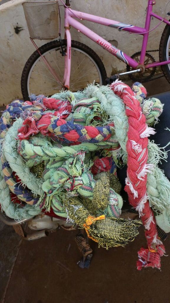 Nas imagens, as cordas trançadas com restos de tecidos, chamadas pelos presos de “teresas”. Elas foram usadas para descer do prédio da Delegacia após alcançarem o teto.