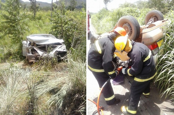 Os bombeiros tiveram muito trabalho para liberar os dois passageiros do Fiat Uno