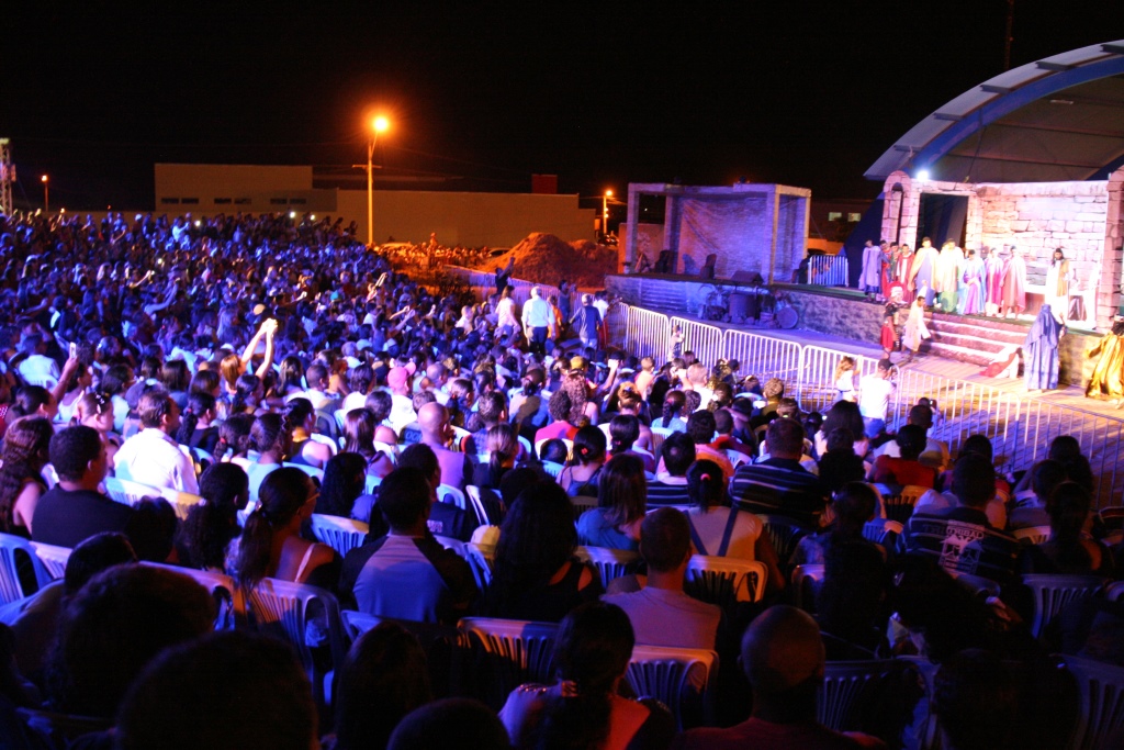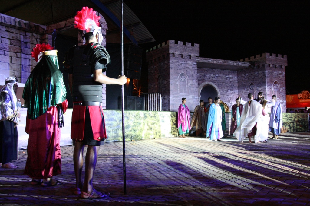 O espetáculo Paixão de Cristo, da Secretaria de Cultura e Turismo de Luís Eduardo Magalhães, realizou na noite deste domingo de Páscoa, 05 de abril, única apresentação na Praça da Bíblia do bairro Florais Lea/Santa Cruz. O espetáculo foi encenado por 35 jovens atores integrantes do Grupo J. Fênix.